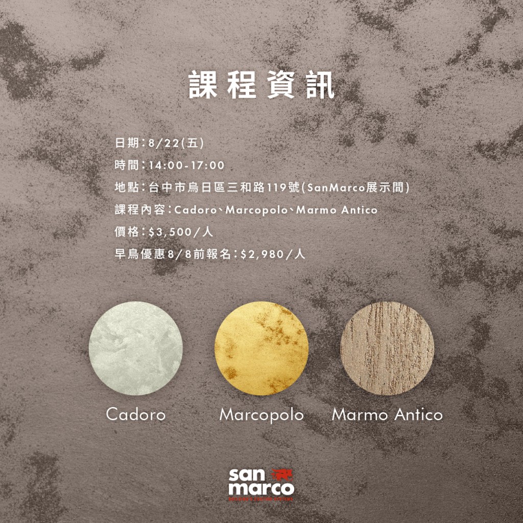 地點:台中市烏日區三和路 119 號( San Marco 台中展示間 )